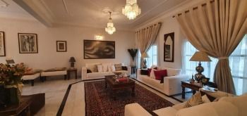 فيلا فاخرة للبيع في جد علي. المساحة 600 متر مربع، 5 غرف نوم، 6 حمامات، صالتين، مطبخ، مخزن، حديقة كبيرة، حوش واسع، حوض سباحة، غرفة خادمة مع حمام، 5 مواقف سيارات. السعر 230 ألف دينار
