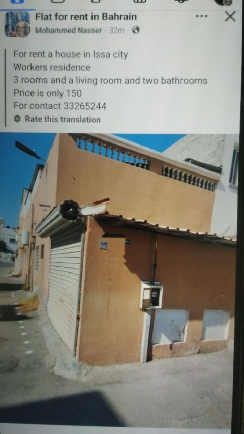 للإيجار بيت في مدينة عيسى، البحرين، سكن عمال. يتكون من ثلاث غرف وصالة وحمامين. السعر فقط 150 دينار بحريني