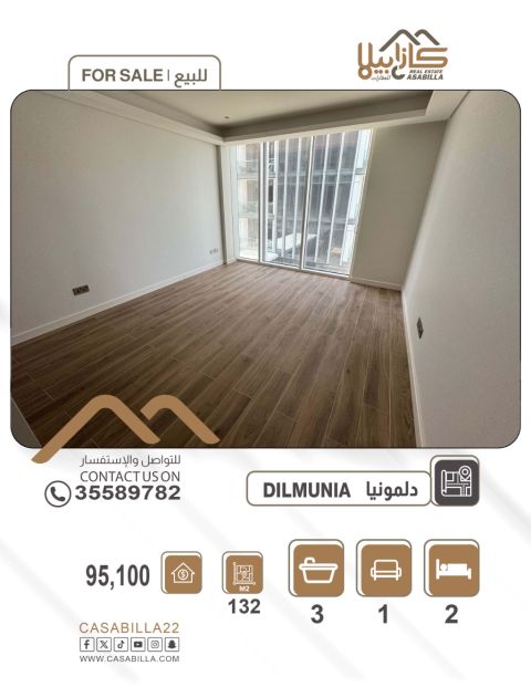 للبيع: شقة في دلمونيا - بناية حديثة. شقة مميزة في موقع راق في دلمونيا ضمن بناية حديثة مع توفر جميع الخدمات. مواصفات الشقة: غرفتان نوم - صالة - 3 حمامات - مطبخ - بلكونة - المساحة 132 متر مربع. مميزات البناية: جميع الخدمات متوفرة. سعر البيع: 95,100 دينار بحريني. للتواصل والاستفسار: 17171772.