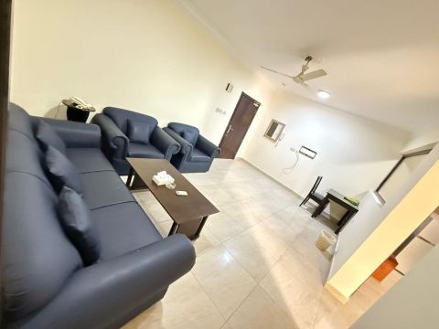 شقة للإيجار في منطقة مدينة حمد، دوار 17، مفروشة بالكامل، غرفة نوم مع صالة، بالكونة، مطبخ، وحمام، تشمل الكهرباء والماء، والسعر 220 دينار.
