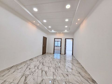 In the city of Galali, a luxurious apartment for rent, first occupant, consisting of two bedrooms + a spacious living room + a large kitchen × two bathrooms + a parking space. The price is 180 dinars without electricity. For contact/ call