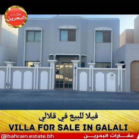 فيلا للبيع في قلالي، 4 غرف نوم، 4 حمامات، كراج لسيارتين، وبلكونه كبيرة. المساحة 330 متر مربع، وتطل على شارعين أمامي وخلفي. المؤجرة حاليا لعائلة بحرينية بمبلغ 400 دينار. السعر المطلوب 155 ألف دينار قابل للتفاوض