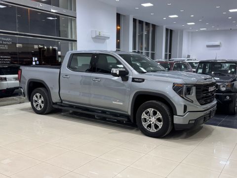 GMC Sierra Elevation 2025 (Silver). Mileage: 1000 km. Mid Option with alloy wheels, camera, sensors, Bluetooth, leather seats, push start, cruise control, 4x4, 8 cylinders, 5.3L engine, 5 seats. Price: BD 18,900 (negotiable). Insurance valid until February 2026. Under warranty. Contact for details.