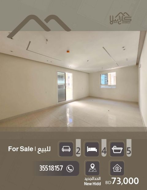 في مدينة الحد، شقة فاخرة للبيع بنظام عربي مع تكييف، بتصميم متميز بتقنية عالية. المساحة 193 متر مربع. تتكون من مجلس منعزل مع حمام، 3 غرف نوم، مطبخ واسع، صالة واسعة، 4 حمامات، بلكونتين، وموقفين للسيارات. السعر 65 ألف دينار. للتواصل، اتصل.