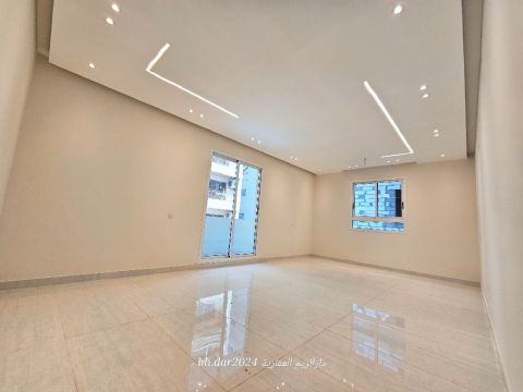 In Al-Hidd city, a luxurious apartment for sale with a distinctive design and super deluxe finishing. Arabic style, only one apartment per floor, two separate entrances. Area is 235 square meters. Apartment details: isolated majlis with bathroom, private entrance for the majlis, 4 bedrooms (3 of them master bedrooms), 2 kitchens, spacious main hall, secondary hall, 5 bathrooms, 3 balconies, and 2 car parking spaces. Price is 73,000 Bahraini dinars. For contact / call.
