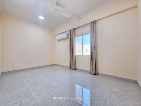 For rent in Al Hadd Al Jadeed, a new, large, excellent, upscale, very clean apartment. First tenant in Al Hadd Al Jadeed. 2 bedrooms, 2 bathrooms, living room, kitchen, 3 balconies, split air conditioners, parking lift, guard, new building, very clean, quiet location. The price is 250 Bahraini dinars excluding utilities, 270 Bahraini dinars including electricity, water, and municipality fees with a 20 Bahraini dinar limit, and it is also negotiable. Food.