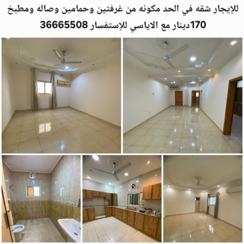 Apartment for rent in Al-Hadd Al-Jadidah, semi-furnished, close to all services. It consists of 3 bedrooms, 1 maid's room, master bedroom, 5 bathrooms, 1 living room, 1 balcony, kitchen, elevator, and private parking. Rent price is 350 dinars, including electricity, for 20 dinars. A unique opportunity and deal for families and foreigners. For serious inquiries, please contact.
