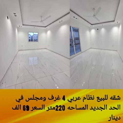 For rent An apartment in the New Hadd area, semi furnished, spacious area, luxury finishing, upscale, close to all services. It consists of two large bedrooms, a large living room, a kitchen, two bathrooms, car parking, elevator, guard, security cameras. Seize the rental opportunity 300 dinars final, including electricity and services. A unique and special opportunity for serious individuals. Contact