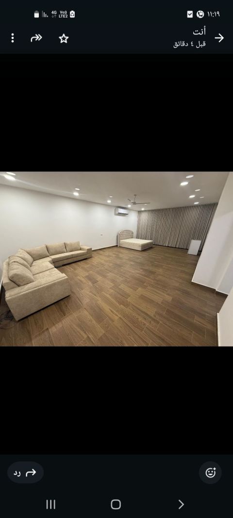 For rent, a very clean and elegant fully furnished studio in A'ali, attached to a villa with a private entrance. It consists of a large room, a very large hall, a kitchen, and two bathrooms on the first floor. A lift is available. The location is excellent and quiet, close to the highway. Price is 220 dinars including electricity and water. A video of the apartment is available.