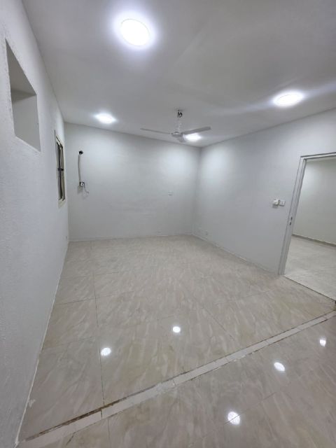 For rent: a clean apartment in Isa Town, close to Al Shola Restaurant. It has two bedrooms (one master), two bathrooms, a kitchen, a living room, a private entrance, and a shared entrance. There is a laundry area, shaded parking, and it is close to services, commercial complexes, restaurants, schools, and a mosque. The rent is 170 BHD, excluding electricity and water. For inquiries, contact.