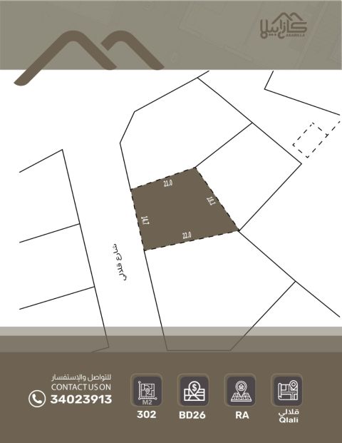 للبيع أرض في قلالي التصنيف RA المساحة 302 متر السعر 26 دينار للقدم قابل للتفاوض للتواصل والاستفسار