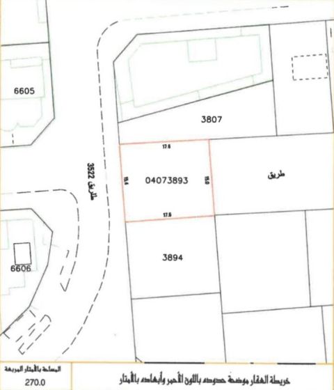 للبيع أرض سكنية في جبلة حبشي، المساحة 270 متر مربع، التصنيف سكني RA، سعر القدم 34408 دينار، السعر الاجمالي 100000 دينار
