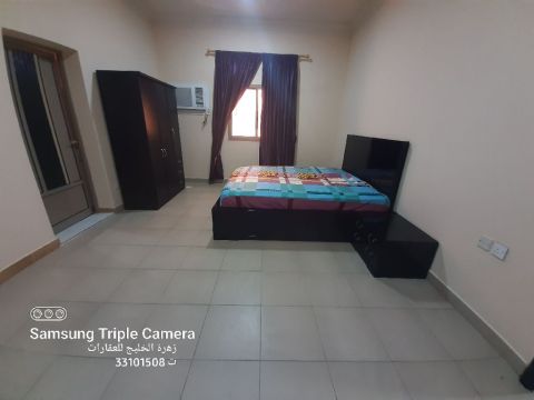 Studio for rent in Jid Ali with electricity and air conditioners, one bedroom, one bathroom, and a kitchen. The top floor has an elevator,160 dinars final for serious inquiries, contact