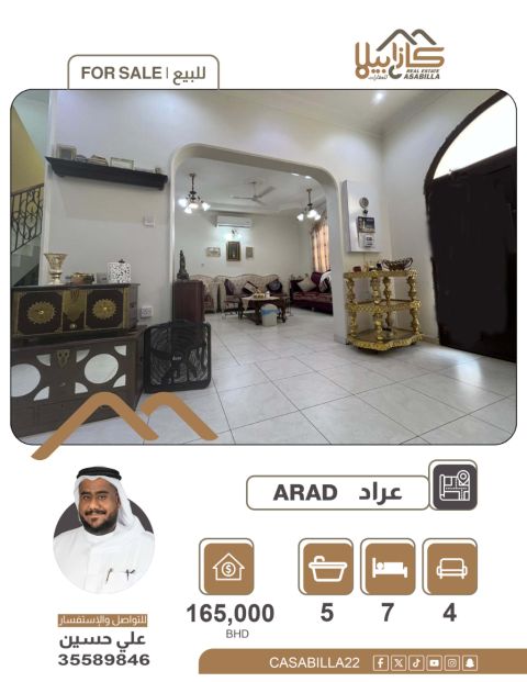 A luxurious villa directly on the sea in Arad for living and investment. A distinctive villa directly on the sea in the Arad area, with an area of 397 square meters, practical design suitable for living and investment. Villa specifications: Ground floor: two spacious halls, guest bathroom, two bedrooms with a shared bathroom, a spacious master bedroom with a private bathroom, external kitchen, maid's room, service room and laundry. First floor: consists of two separate apartments. The first apartment: bedroom, hall, changing room.