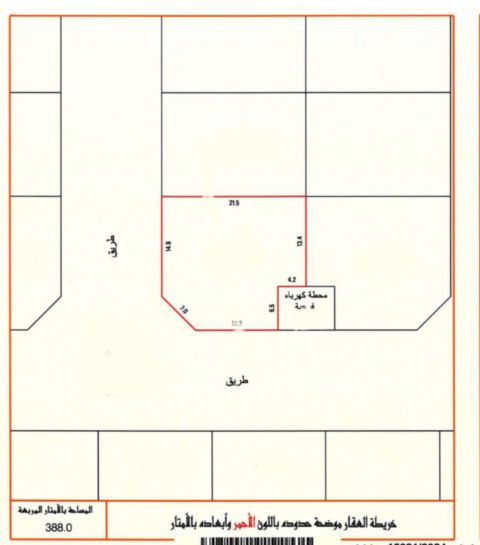 للبيع أرض سكنية في قلالي، على شارعين وزاوية. مساحة الأرض 388 متر مربع. التصنيف سكني RA. سعر القدم المربع 28 دينار. السعر الإجمالي 116,940 دينار.