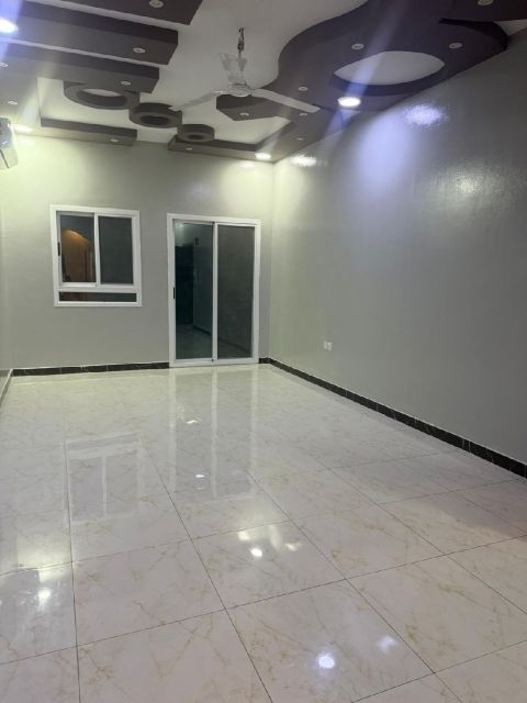 For sale, a luxurious residential apartment in Hamad City, Roundabout 2, a new building on an open front street, 4 bedrooms (3 master) a spacious hall, a reception hall, a separate Majlis with a private bathroom, a kitchen, 5 bathrooms, 3 balconies, a storage room, private parking for apartments, an elevator, an area of 220 SQM, the price is 73000 dinars