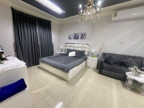 For sale, a house in Hamad City, Roundabout 9, on two streets and a corner. Land area is 213 square meters, building area is approximately 300 square meters. It consists of two floors with 4 rooms, 1 master bedroom, two living rooms, 3 bathrooms, a driver's room with a private bathroom, a maid's room with a private bathroom, outdoor parking for 5 cars, 2 storage rooms, a laundry and ironing room, and a kitchen. Price is 120,000.
