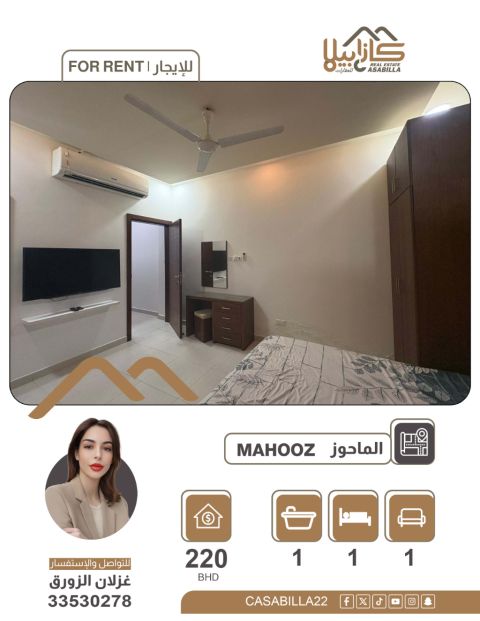 استوديو للإيجار في منطقة الماحوز. استوديو أنيق للإيجار في الماحوز، استوديو عصري بموقع استراتيجي في الماحوز، يتميز بالهدوء والخصوصية ومناسب جداً للأفراد الباحثين عن الراحة. مطبخ، صالة، حمام. السعر 220 دينار. الكهرباء مشمولة، بدون إنترنت. للتواصل.
