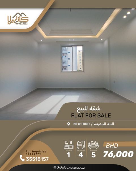 للبيع: شقق تمليك جديدة في منطقة الحد الجديدة. تتكون الشقة من مجلس منفصل مع حمام، 4 غرف نوم، صالتين، مطبخين، 3 بلكونات، ومدخلين. يمكن فصلها إلى شقتين. تشمل مصعد وموقفين لسيارتين. المساحة 240 متر مربع. السعر 76,000 دينار. للاستفسار.