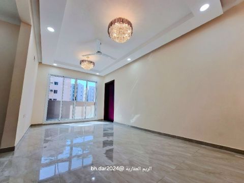 For sale: A single-floor apartment with two entrances in the New Hidd area, close to all services, featuring premium finishes. First, apartment details: 1 men's living room with a bathroom, 1 spacious family living room with a balcony, 1 dining room, 4 bedrooms including 3 master bedrooms, 5 bathrooms, 3 balconies. Second, facilities and services: Two-apartment system, parking for two cars, single floor, proximity to services and public facilities. Third, area and price: Area 211.7 square meters, price 73,000 Bahraini dinars. For contact.