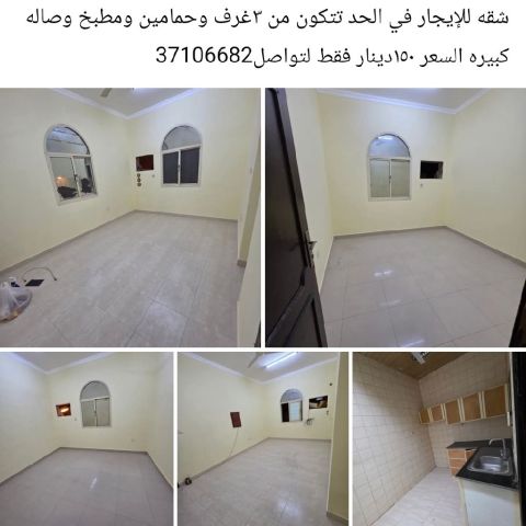 شقة للإيجار في الحد تتكون من 3 غرف و3 حمامات ومطبخ وصالة. السعر 150 دينار