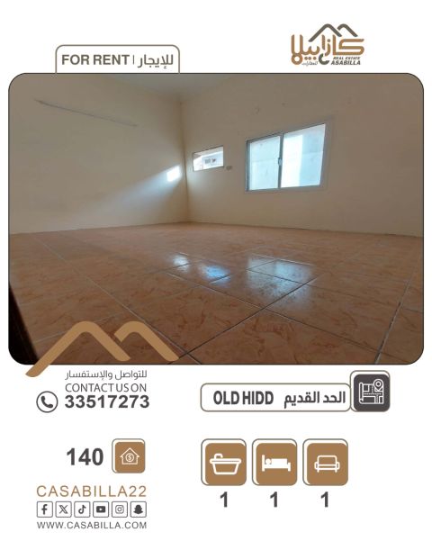 للإيجار: شقة في الحد القديمة. التفاصيل: غرفتين نوم مع مطبخ وحمام. موقع هادئ وآمن، قريب من جميع الخدمات. الإيجار: 140 دينار شامل الكهرباء والماء. عربون: 25 دينار. للتواصل.