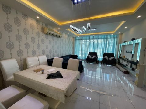 للإيجار: شقة كبيرة مساحتها 162 متر مربع في أمواج، مفروشة بالكامل. تتكون من صالة كبيرة، 3 حمامات، 3 غرف نوم، ومطبخ. المرافق تشمل مصعد، مسبح، موقف سيارات، وجيم. الإيجار 330 دينار بحريني غير شامل الكهرباء، أو 400 دينار شامل الكهرباء.