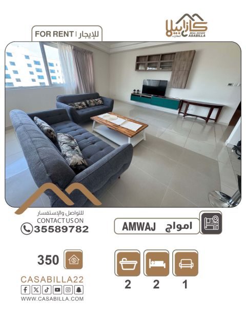 Apartment for rent in Amwaj Islands, 3 bedrooms, fully furnished with two balconies. A luxurious apartment in Amwaj Islands within a modern building, ideal for families or upscale living, and close to all services. Apartment specifications: 3 spacious bedrooms, 3 bathrooms, a large and bright living room, a fully equipped kitchen, and a balcony with an open view. Building features: modern building, gym and fitness center, prime location close to all services (restaurants, cafes, supermarket). Monthly rent: 600 Bahraini dinars. For contact.