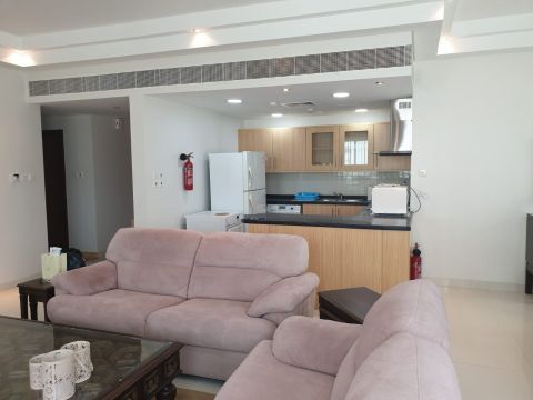 Furnished apartment, area 130 SQM, location Amwaj Islands, next to Gulf Suites, building name The Beak, parking 1 spot, second floor, reception, secure with security and cameras, number of rooms 2, living room 1 large, bathroom 2, separate kitchen 1, storage and laundry room 1, rent value 320 dinars, municipality fee 20 dinars, electricity and water included