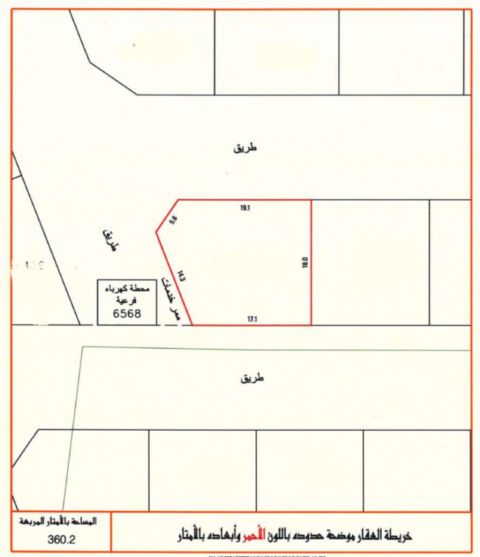 للبيع أرض في ديار المحرق بالقرب من سوق البراحة، مساحة الأرض 1071 متر مربع، تصنيف الأرض B6، سعر القدم 36 دينار