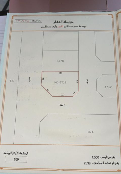 للبيع أرض في الحد B4 - المساحة 659 متر مربع - موقع مميز على 3 شوارع - السعر 205000 دينار بحريني