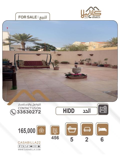 A luxurious corner villa on 3 streets in Al Hidd, with spacious areas and high privacy for sale. A distinctive villa in the Al Hidd area with a rare strategic location, corner on three streets providing the highest levels of privacy and ideal spaces for family living or investment. Land area 456m, corner on 3 streets, two separate entrances, large isolated majlis with majlis, 5 bedrooms, 5 bathrooms, two halls, kitchen, maid's room, spacious front and back yard.