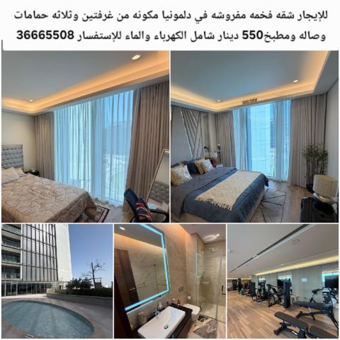For rent A new apartment in Delmonia - Canal View, with 2 bedrooms, 3 bathrooms, a living room, a fully equipped kitchen, a sea view, a balcony, and built - in cabinets. Facilities include an indoor/ outdoor swimming pool, gym, garden, party hall, barbecue area, prayer rooms, spa, and sauna. rent is BD650 inclusive of electricity and water (with a limit of BD25) Private parking and 24 - hour security