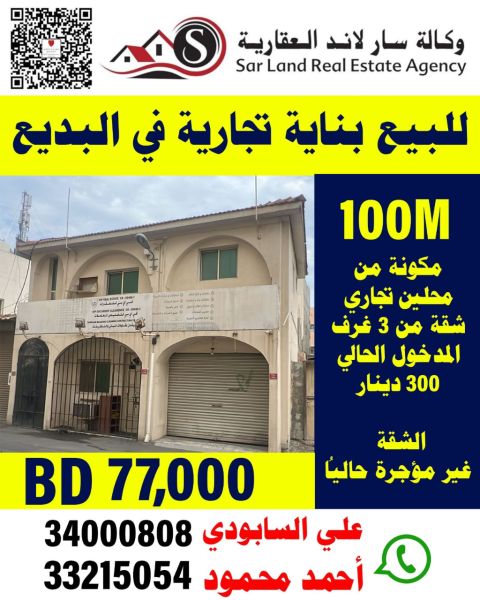 A multi - use three - story building for sale in Salmabad for 305000 Bahraini dinars. This three - story building is located in Salmabad, an excellent area. The building consists of 5 commercial shops and 11 two - bedroom apartments. It includes an elevator, parking, and other amenities. The land area is 349 SQM, and it is situated on two streets, front and back. The price is negotiable. easy access
