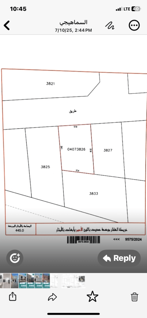 للبيع أرض في الهملة التصنيف RHA المساحة 265.1 متر مربع المطلوب 27 دينار للقدم السعر الإجمالي 77045 ألف دينار قابل للتفاوض