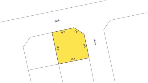 A corner residential land (RB) for sale in Saar, priced at 26 Bahraini dinars per foot. This exclusive property is located in Saar, near St. Christopher'British School, classified as RB. It allows for the construction of a 3 - story residential building, with a land area of 437.6 SQM, and is a corner plot. We offer 26 Bahraini dinars per foot, with a total price of 122450 Bahraini