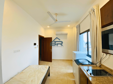 للإيجار: استوديو في البديع بالقرب من عيادة الكوثر، يحتوي على غرفة وحمام ومطبخ، يشمل الكهرباء والتكييف. السعر 140 ديناراً.