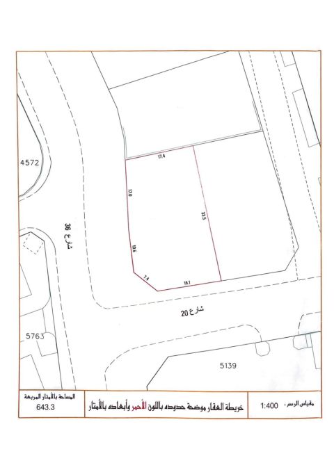 يقدم مركز الغفران العقاري للبيع أرض سكنية في منطقة باربار - المساحة 643.3 متر مربع - التصنيف سكني حدائقي RG - سعر القدم المربع 24 دينار - السعر الاجمالي 166.19 ألف دينار