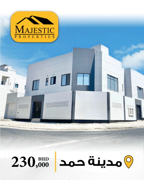 للبيع فيلا في مدينة حمد، الدوار الأول، بالقرب من الطريق السريع. مساحة الأرض 370 متر مربع، تشمل مجلس، 3 صالات، 7 غرف نوم، 7 حمامات، مطبخ، حوش، ملحق عاملة منزلية، وكراج. السعر 130,000 دينار بحريني قابل للتفاوض. للتواصل.