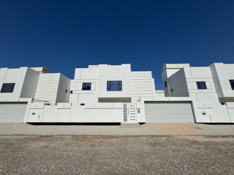 Dominions Real Estate for sale: A new villa for sale in Al-Malikiyya near the sea. It consists of 3 master bedrooms, 5 bathrooms, 3 living rooms, 2 kitchens, a maid's room, a laundry area, a storage room, two balconies, a family sitting area, a barbecue area, and a garage for two cars. The villa's features include comfortable decor, calm colors, various lighting, security cameras, and wall insulation. The land area is 177 square meters, and the built-up area is 313 square meters. The price is 120,000 dinars negotiable. REF 3864