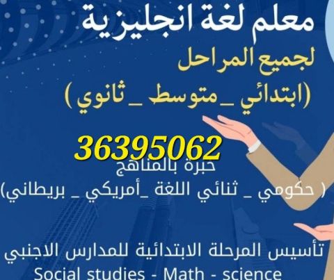معلم ذو خبرة كبيرة في تدريس اللغة الإنجليزية للمراحل الابتدائية والإعدادية والثانوية في المدارس الحكومية. شرح وتأسيس وقواعد تدريس الرياضيات والعلوم واللغة الإنجليزية والدراسات الاجتماعية لطلاب المدارس الدولية والخاصة. مساعدة طلاب الجامعات ودورات التأسيس. المحرق - عراد - الحد - قلالي البسيتين مع إمكانية الحضور إلى أي مكان آخر.