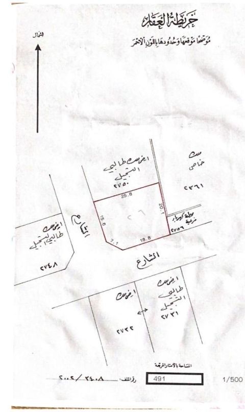 للبيع أرض سكنية في جدحفص، المساحة 491 متر مربع، على شارعين وزاوية، المطلوب 155 ألف دينار