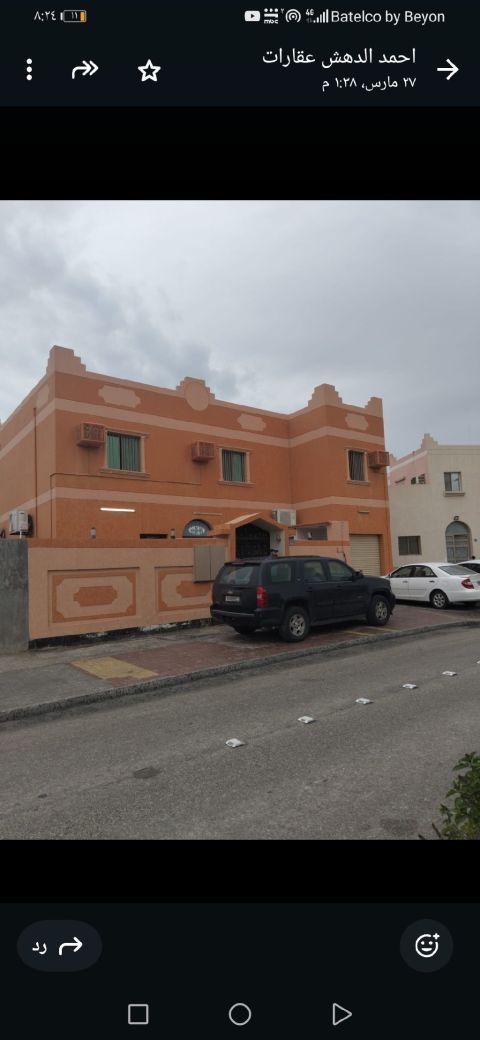 منزل للبيع في منطقة البسيتين، يقع على زاوية شارعين، يتكون من 7 غرف نوم، مطبخين، 5 حمامات، صالتين، وموقف لسيارتين. مساحته 202 متر مربع.
