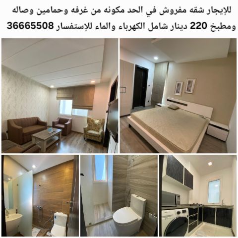 للإيجار شقة مفروشة في الحد مكونة من غرفة وحمامين وصالة ومطبخ 220 دينار مع الكهرباء والماء