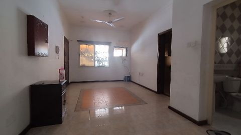 Qudaibiya, close to Filipino Garden area. 2 BHK unfurnished flat for rent. BD160 without EWA. Hall, 2 bedrooms, 1 bathroom, and closed kitchen. Separate water meter. Reference number V011006. Contact for details