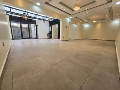 A very clean house for rent in Hamad City (Al-Lawzi). It consists of 3 floors: The ground floor includes a living room, two large halls, a kitchen, two bathrooms, a courtyard, and a car garage. The first floor includes 3 bedrooms, a living room, a kitchen, and two bathrooms. The second floor includes two bedrooms and a bathroom. The house has 4 split air conditioners. The price is 400 dinars, excluding electricity, which is subsidized. For contact.