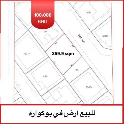 For sale A distinguished land in Bu Quwah (Saraya 2) corner plot on two streets, very strategic location. Area 207.1 SQM. Classification RHA. Price 79500 Bahraini dinars only. Price per square foot 35 dinars. For cash sale only. Location features Direct entrance and exit from the Highway