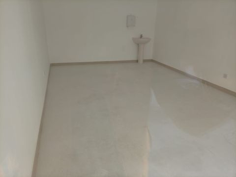 A commercial showroom (300 SQM) for rent in Muharraq for 2400 Bahraini dinars. This commercial showroom is located in Muharraq near the Highway. It has an area of 300 SQM, a mezzanine floor, and is ready for commercial registration for activities such as trade, offices, showrooms, retail stores, etc. There is a parking lot behind the building, with easy access to the airport, Buseiteen