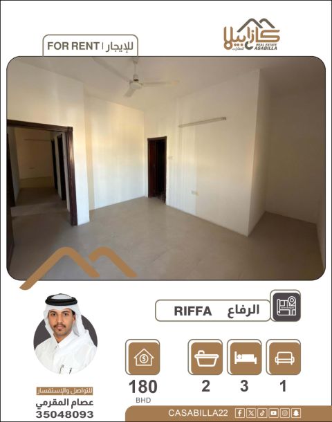 Apartment for rent in Riffa East, Abu Quwara, with electricity up to 30 dinars, which the owner will pay. It is a residential area with all services available, including refrigerators, bakeries, restaurants, and a laundry. We are looking for good clients. We offer the lowest price in the Riffa Abu Quwara area. Features: 1 bedroom, 1 bathroom, living room, large kitchen, shaded parking space, ground floor. Electricity up to 30 dinars. Rent: 160 dinars. Contact number provided.