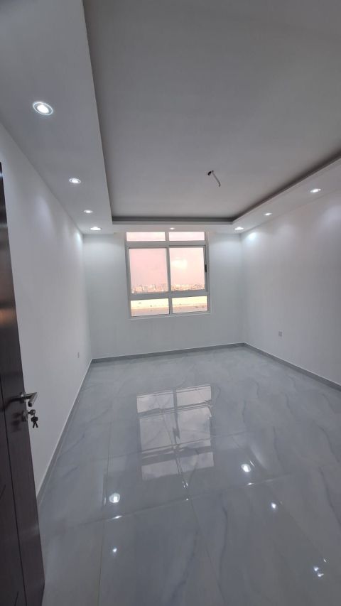 For sale: An apartment near Al-Haniniyah Housing, Abu Kuwara side. On two streets. The location is quiet, central to services, and near the mosque. The streets are fully paved. The apartment is slightly less than 200 square meters. It consists of 3 large rooms, a large living room, a large majlis (sitting area), a large kitchen, 3 bathrooms, a balcony, a lift, 2 private parking spaces in the apartment, a large store under the apartment, and a very wide roof suitable for drying clothes and gatherings, etc. The apartment building consists of parking below and 3 apartments above.